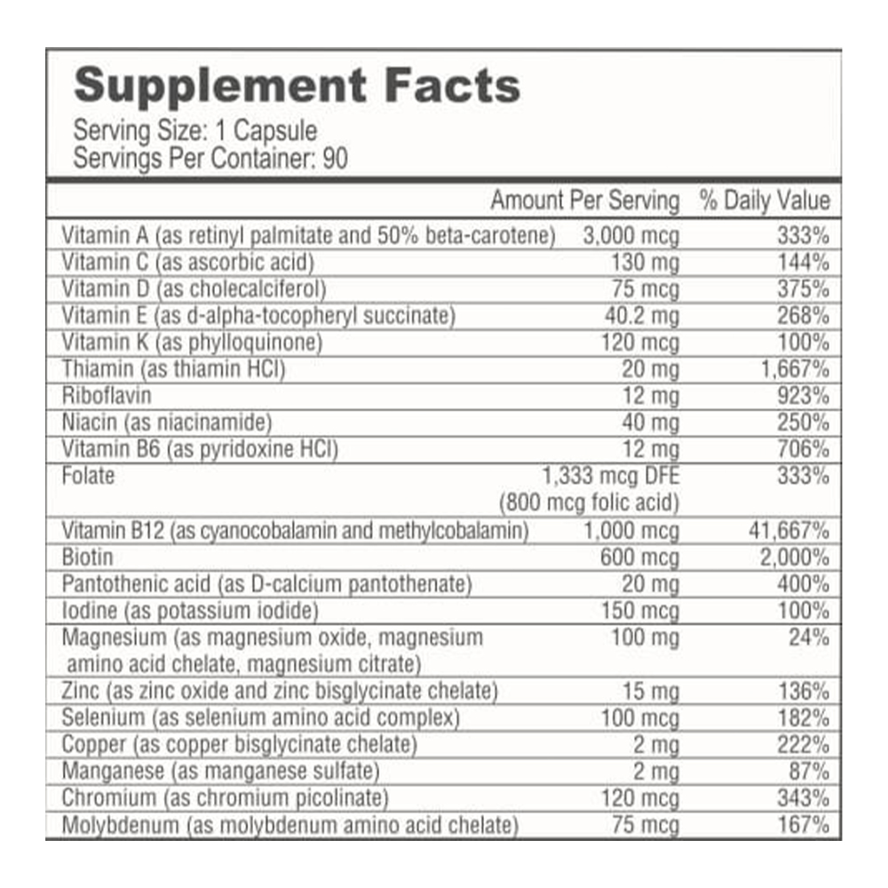 BariatricPal Multivitamin ONE é baseado nas últimas diretrizes pós-operatórias da Sociedade Americana de Cirurgia Metabólica e Bariátrica (ASMBS) para fornecer 22 vitaminas e minerais. BariatricPal Multivitamin ONE é incrivelmente rico em nutrientes como vitaminas B12 e D, ácido fólico e biotina, que são conhecidos por serem de risco para pacientes de cirurgia bariátrica.