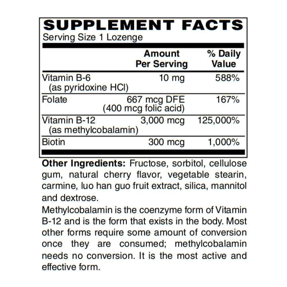 Methyl B-12 (3,000 mcg) with Biotin, B6 & Folate Cherry Flavored Lozenges