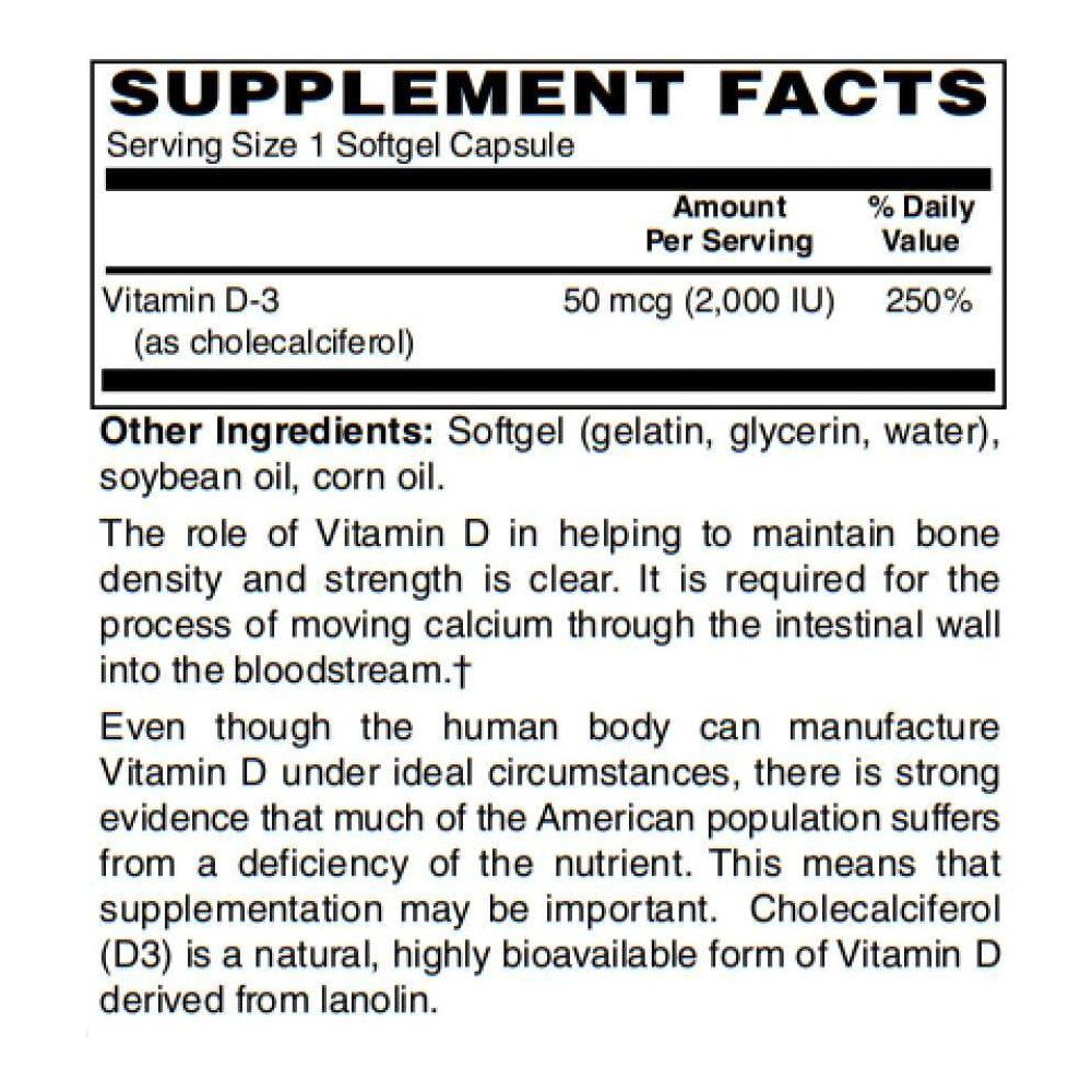 BariatricPal Vitamin D-3 fornece 2.000 UI de vitamina D-3 (colecalciferol), uma forma altamente biodisponível de vitamina D, em uma cápsula mole fácil de engolir.